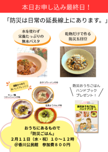 防災料理をみんなで作って食べる会です。